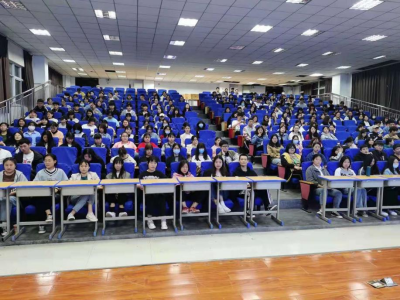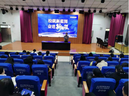 4月22日下午,思政部教师张丽丽在文昌校区报告厅开展以《绘制新蓝图 开启新征程》为主题的形势与政策专题讲座。来自护理学院2019级的200多名学生参加了本次讲座。