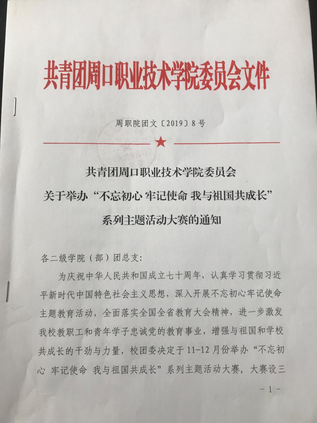 关于举办“不忘初心 牢记使命 我与祖国共成长”系列主题活动大赛的通知