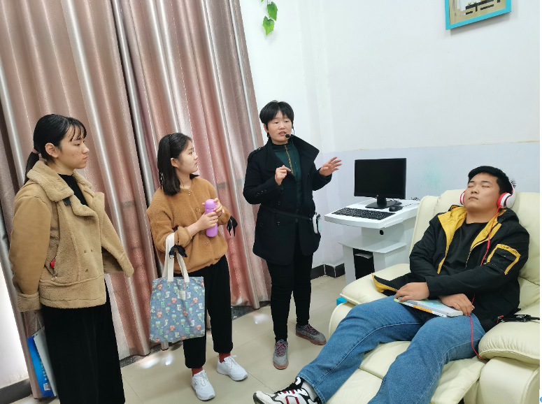 参观中,任课教师对我校心理健康教育中心的职能、心理健康教育老师以及基本建设等情况进行了介绍,并带领新生依次参观了个体心理辅导室、团体心理辅导室、音乐放松室、沙盘辅导室等区域。在老师的指导下,同学们积极体验了各种减压、放松、宣泄设备,兴致勃勃地感受了音乐放松椅等设备。其中,宣泄室和沙盘游戏室是最吸引大家的地方,不少同学进行了现场模拟,一件件精美的沙具让大家爱不释手,感觉生动、有趣、神奇、美妙,仿佛学生们又回到了童年时代。参观结束后,大家进行感悟分享,身心得到了放松。