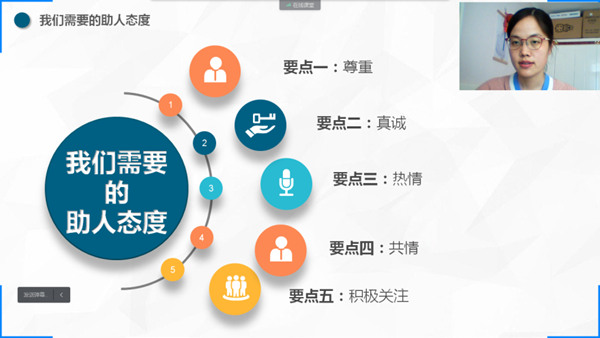 王亚琳老师从以下四个方面展开讲述:1、疫情下常见的消极心理及应激反应;2、大学生疫情期间的自我心理调适;3、班级心理委员朋辈互助技巧;4、心理援助、心理危机干预及学校心理咨询资源。