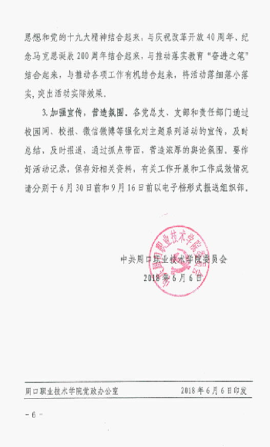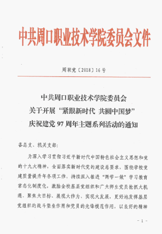 《周口职业技术学院2018年党建工作要点》的通知