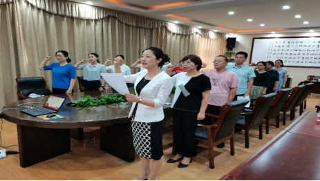 面对庄严的党旗、神圣的国徽,思政部党支部书记刘冬霞领誓,全体党员高举右手、握紧拳头,庄严宣誓:“我志愿加入中国共产党,拥护党的纲领,遵守党的章程,履行党员义务,执行党的决定,严守党的纪律,保守党的秘密,对党忠诚,积极工作,为共产主义奋斗终身,随时准备为党和人民牺牲一切,永不叛党。” 全体党员重温入党誓词,在党旗下接受心灵的净化和洗礼,牢记中国共产党党员的政治责任和历史使命,不断保持中国共产党党员的先进性,切实发挥中国共产党党员的先锋模范作用。