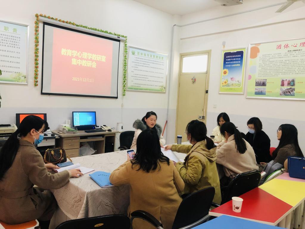 12月1日下午,思政部教育学心理学教研室在四楼团体辅导室召开期末教学工作交流会暨集体备课会。会议由教研室主任刘青主持,教研室全体成员参会。