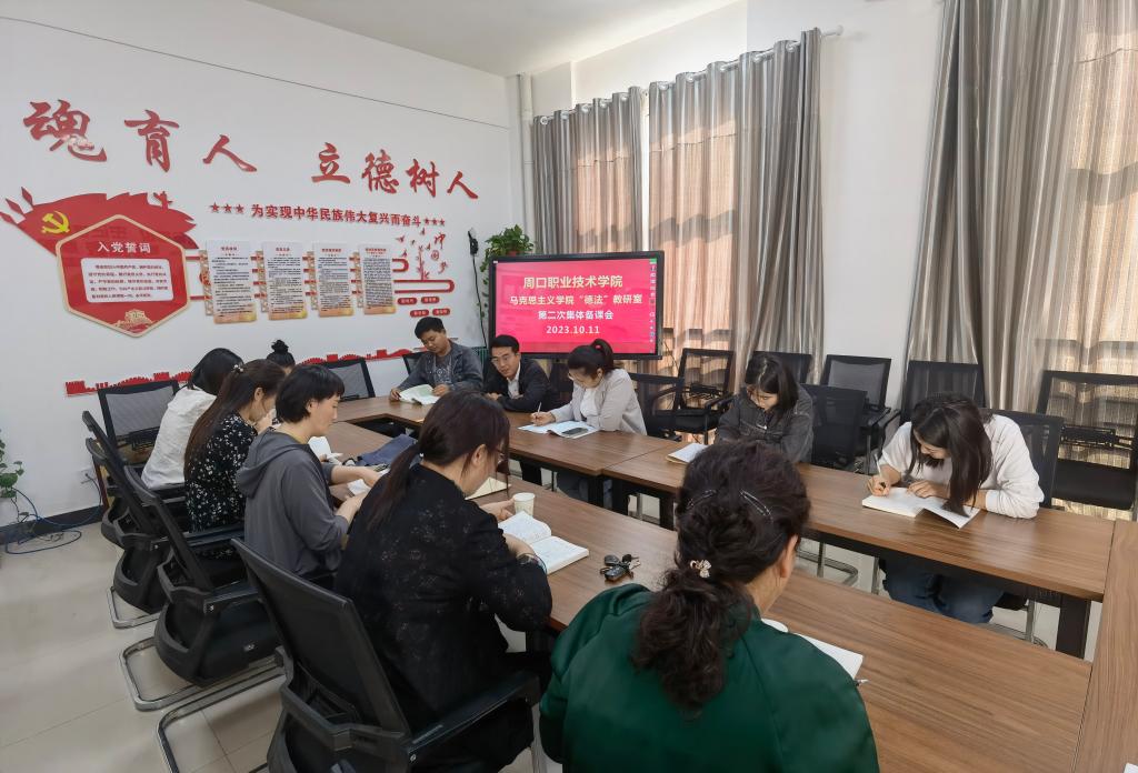 10月11日下午,思想道德与法治教研室第二次集体备课会在bevictor伟德官网集体备课室举行,会议由教研室主任张丽丽主持,全体专兼职教师参加会议。