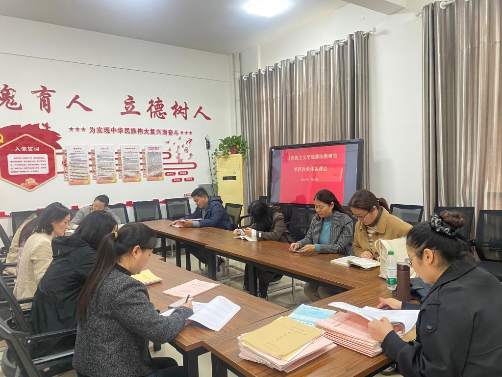 11月12日下午“思想道德与法治”课程第四次集体备课会在开元校区行政楼3353室举行,教研室全体教师参加了此次会议,会议由教研室主任张丽丽主持。
