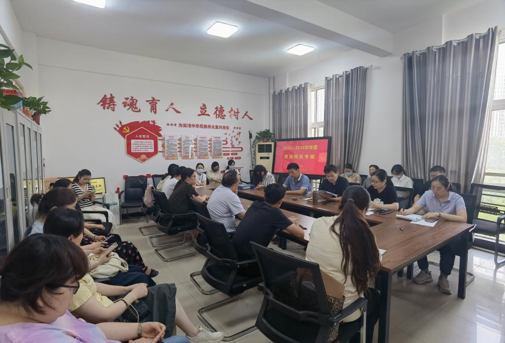 此次考核由学生测评、教师互评、部门考评三方面进行评议。学生评价是学生根据教师的教育教学工作进行认真客观的评议。教师互评是根据师德考核标准和细则,全体教师要本着公平公正,认真负责的态度和原则,对每位老师在各方面的表现进行评价互评,共促成长。经过前两个环节的测评后,部门考核小组结合各位教师岗位职责和日常表现进行民主评议,确定优秀人选。