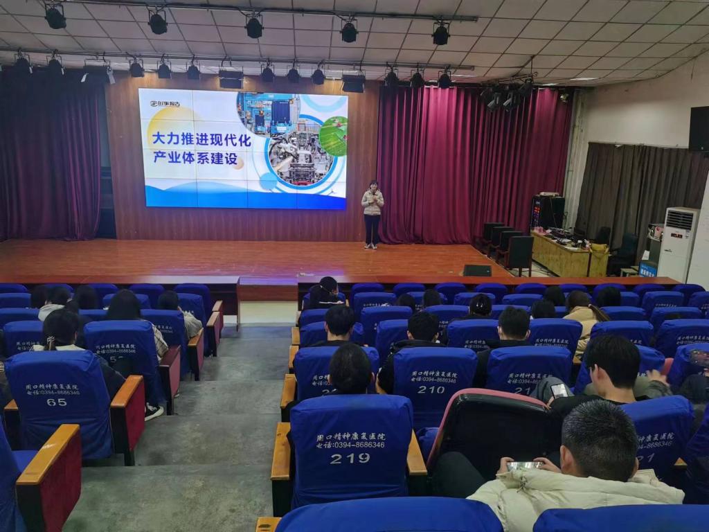 2023年12月7日下午,bevictor伟德官网教师张丽丽在文昌校区报告厅为22级康复班学生上了一堂题为“大力推进现代化产业体系建设”的形势与政策课。