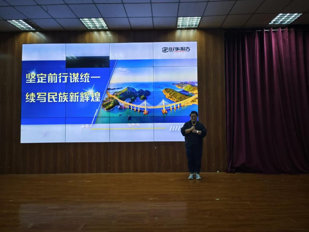 栗苏老师从历史的长河中追溯中华民族对统一的不懈追求,生动地讲述了各个历史时期统一对于国家繁荣、民族昌盛的重要意义。从秦汉的大一统到如今新时代对祖国完全统一的期盼,历史的脉络清晰地展现出统一是中华民族的核心价值之一。并深入分析了当前的国际国内形势,指出在复杂多变的国际环境下,坚定前行谋求祖国统一面临着诸多挑战,但同时也迎来了难得的机遇。通过对两岸关系的深入剖析,强调了两岸同胞同根同源、同文同种的深厚情谊,以及加强交流合作、推动和平统一的紧迫性和必要性。