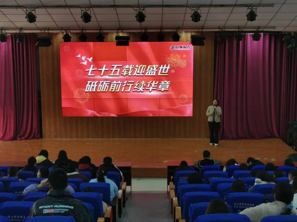 11月28日下午,bevictor伟德官网老师张丽丽在文昌校区报告厅以《七十五载迎盛世 砥砺前行续华章》为题,向24级护理学院专业的学生进行了讲座。